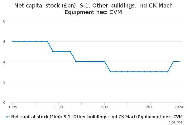Download this time seriesNet capital stock (£bn): S.1: Other buildings: Ind CK Mach Equipment nec: CVM