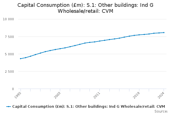 Download this time seriesCapital Consumption (£m): S.1: Other buildings: Ind G Wholesale/retail: CVM