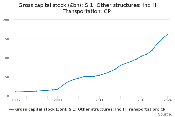 Download this time seriesGross capital stock (£bn): S.1: Other structures: Ind H Transportation: CP