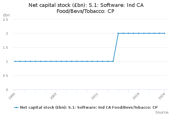 Download this time seriesNet capital stock (£bn): S.1: Software: Ind CA Food/Bevs/Tobacco: CP