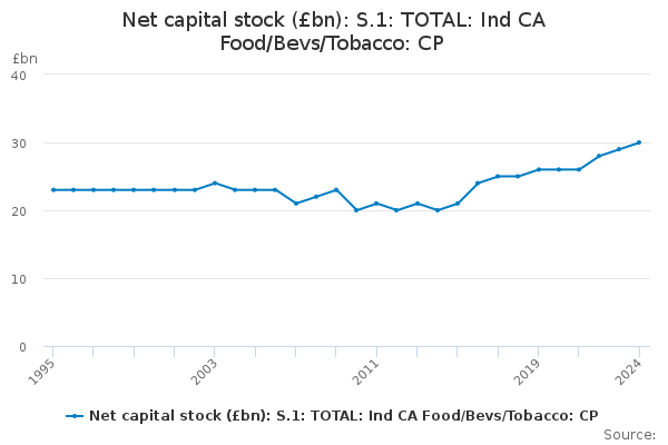 Download this time seriesNet capital stock (£bn): S.1: TOTAL: Ind CA Food/Bevs/Tobacco: CP