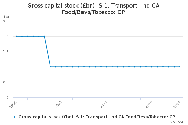 Download this time seriesGross capital stock (£bn): S.1: Transport: Ind CA Food/Bevs/Tobacco: CP