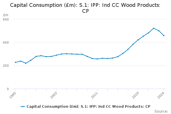 Download this time seriesCapital Consumption (£m): S.1: IPP: Ind CC Wood Products: CP