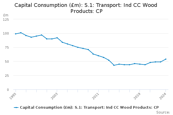 Download this time seriesCapital Consumption (£m): S.1: Transport: Ind CC Wood Products: CP