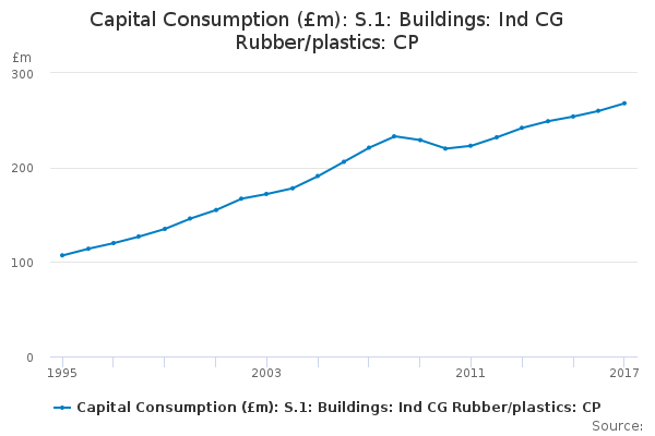 Download this time seriesCapital Consumption (£m): S.1: Buildings: Ind CG Rubber/plastics: CP