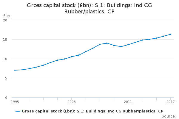 Download this time seriesGross capital stock (£bn): S.1: Buildings: Ind CG Rubber/plastics: CP