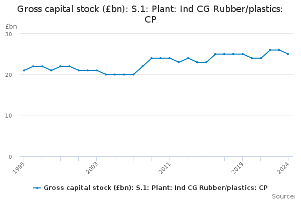 Download this time seriesGross capital stock (£bn): S.1: Plant: Ind CG Rubber/plastics: CP