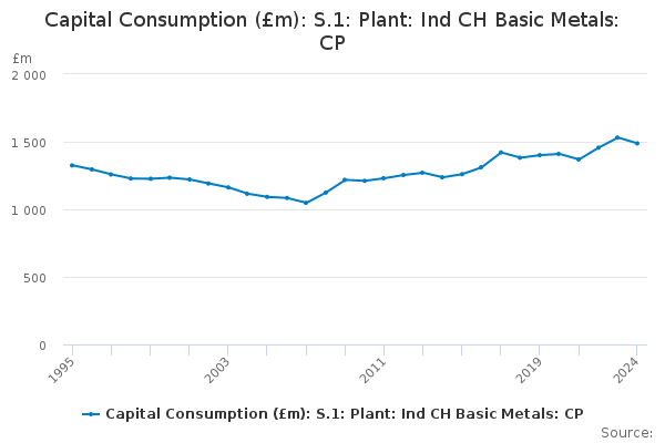 Download this time seriesCapital Consumption (£m): S.1: Plant: Ind CH Basic Metals: CP