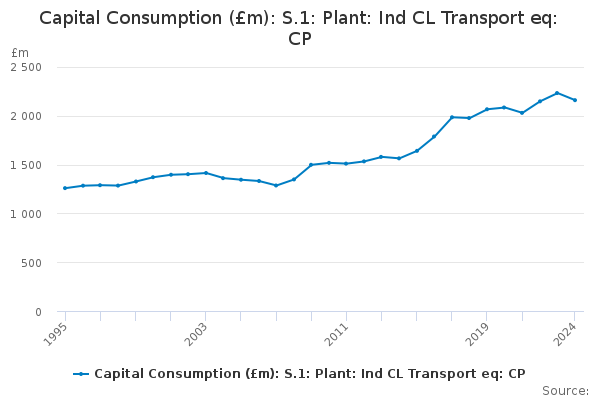 Download this time seriesCapital Consumption (£m): S.1: Plant: Ind CL Transport eq: CP