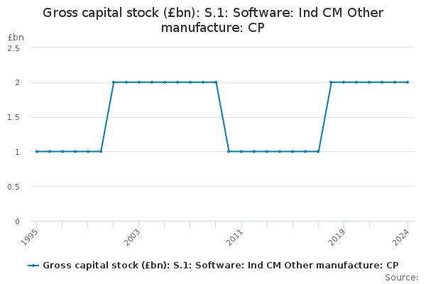 Download this time seriesGross capital stock (£bn): S.1: Software: Ind CM Other manufacture: CP