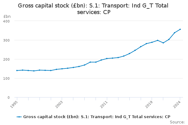 Download this time seriesGross capital stock (£bn): S.1: Transport: Ind G_T Total services: CP