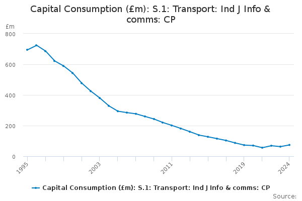 Download this time seriesCapital Consumption (£m): S.1: Transport: Ind J Info & comms: CP