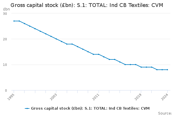 Download this time seriesGross capital stock (£bn): S.1: TOTAL: Ind CB Textiles: CVM