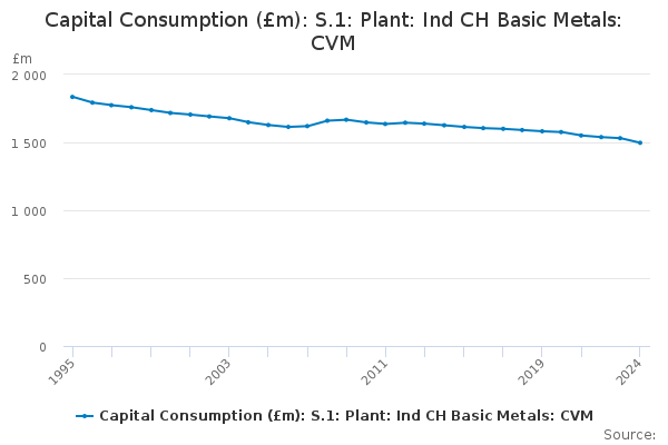 Download this time seriesCapital Consumption (£m): S.1: Plant: Ind CH Basic Metals: CVM