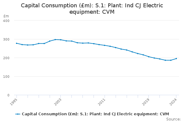 Download this time seriesCapital Consumption (£m): S.1: Plant: Ind CJ Electric equipment: CVM