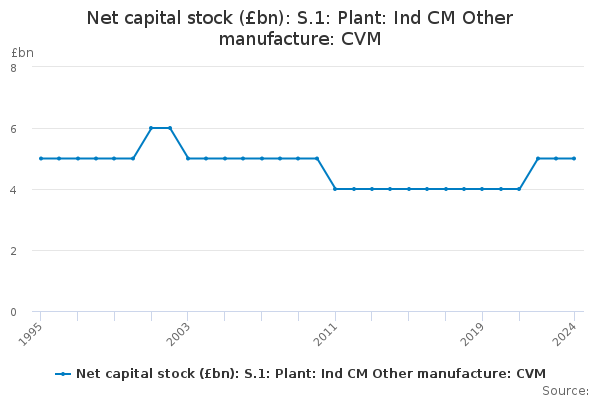 Download this time seriesNet capital stock (£bn): S.1: Plant: Ind CM Other manufacture: CVM