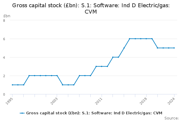 Download this time seriesGross capital stock (£bn): S.1: Software: Ind D Electric/gas: CVM
