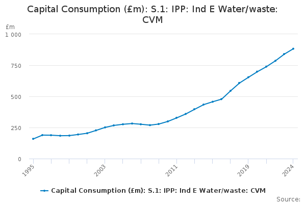 Download this time seriesCapital Consumption (£m): S.1: IPP: Ind E Water/waste: CVM