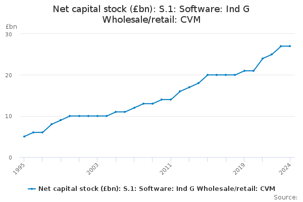 Download this time seriesNet capital stock (£bn): S.1: Software: Ind G Wholesale/retail: CVM