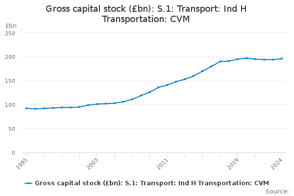 Download this time seriesGross capital stock (£bn): S.1: Transport: Ind H Transportation: CVM