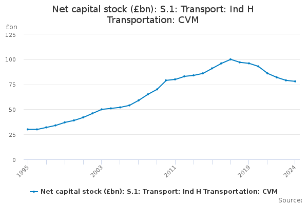 Download this time seriesNet capital stock (£bn): S.1: Transport: Ind H Transportation: CVM