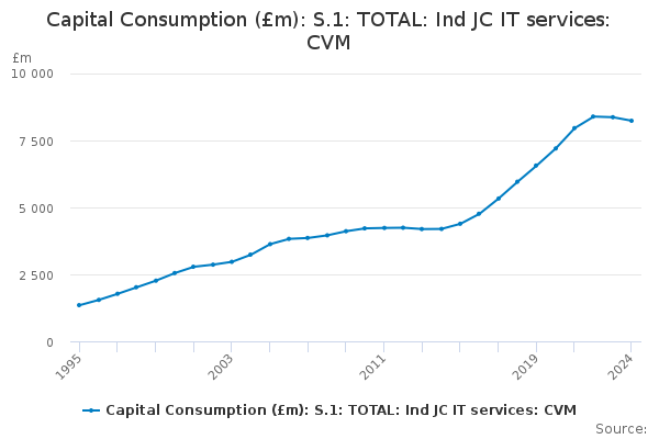 Download this time seriesCapital Consumption (£m): S.1: TOTAL: Ind JC IT services: CVM