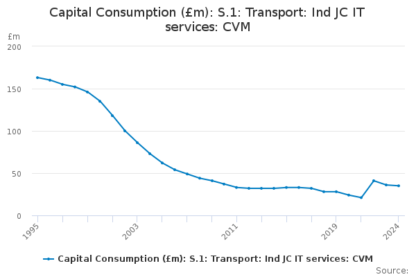 Download this time seriesCapital Consumption (£m): S.1: Transport: Ind JC IT services: CVM