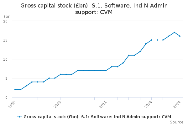 Download this time seriesGross capital stock (£bn): S.1: Software: Ind N Admin support: CVM