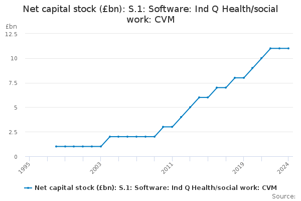 Download this time seriesNet capital stock (£bn): S.1: Software: Ind Q Health/social work: CVM