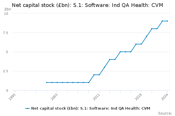 Download this time seriesNet capital stock (£bn): S.1: Software: Ind QA Health: CVM