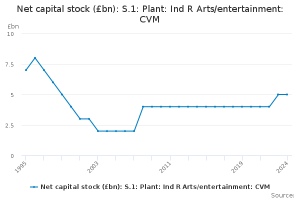 Download this time seriesNet capital stock (£bn): S.1: Plant: Ind R Arts/entertainment: CVM