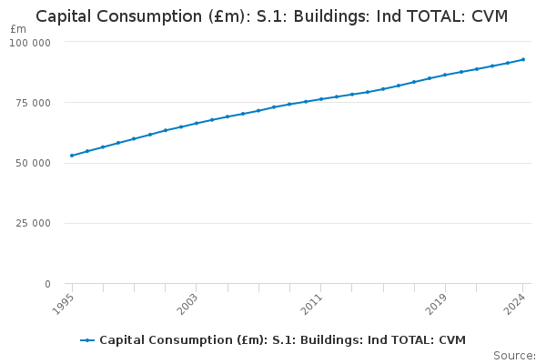 Download this time seriesCapital Consumption (£m): S.1: Buildings: Ind TOTAL: CVM