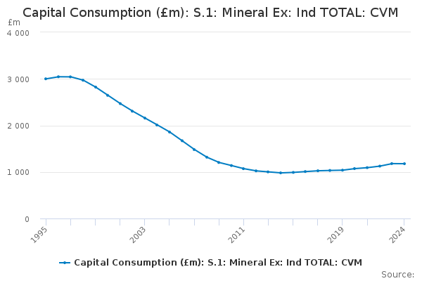 Download this time seriesCapital Consumption (£m): S.1: Mineral Ex: Ind TOTAL: CVM