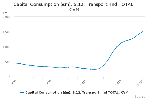 Download this time seriesCapital Consumption (£m): S.12: Transport: Ind TOTAL: CVM