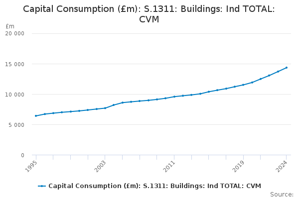 Download this time seriesCapital Consumption (£m): S.1311: Buildings: Ind TOTAL: CVM
