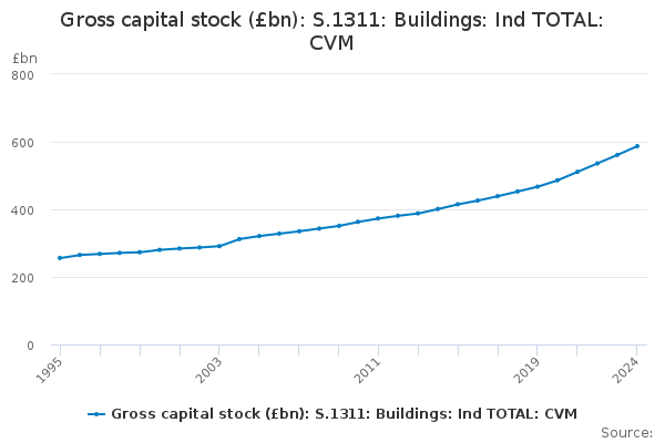 Download this time seriesGross capital stock (£bn): S.1311: Buildings: Ind TOTAL: CVM