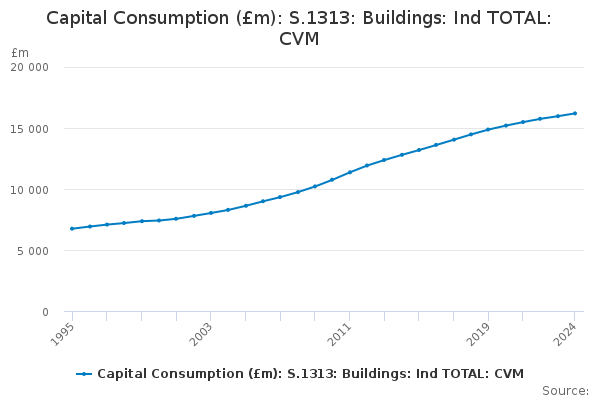 Download this time seriesCapital Consumption (£m): S.1313: Buildings: Ind TOTAL: CVM