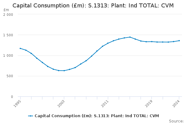 Download this time seriesCapital Consumption (£m): S.1313: Plant: Ind TOTAL: CVM