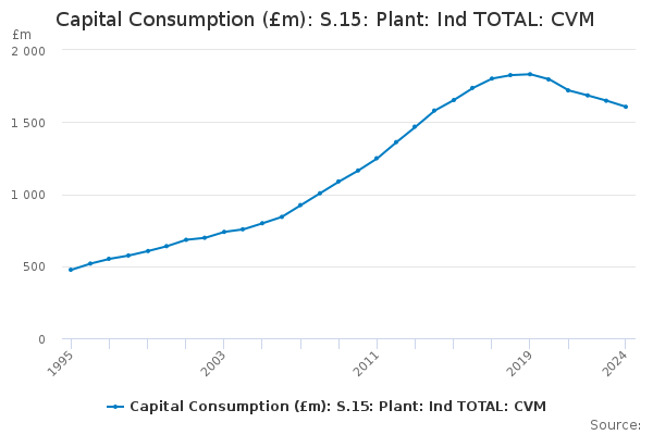 Download this time seriesCapital Consumption (£m): S.15: Plant: Ind TOTAL: CVM