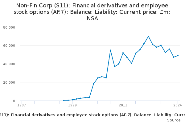 Download this time seriesNon-Fin Corp (S11): Financial derivatives and employee stock options (AF.7): Balance: Liability: Current price: £m: NSA