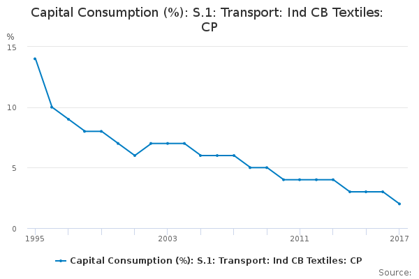 Download this time seriesCapital Consumption (%): S.1: Transport: Ind CB Textiles: CP