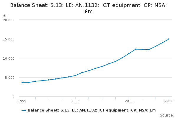 Download this time seriesBalance Sheet: S.13: LE: AN.1132: ICT equipment: CP: NSA: £m