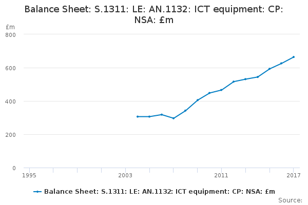 Download this time seriesBalance Sheet: S.1311: LE: AN.1132: ICT equipment: CP: NSA: £m