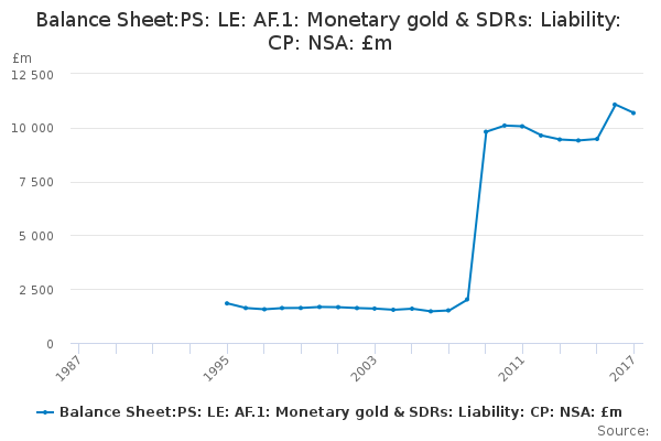 Download this time seriesBalance Sheet:PS: LE: AF.1: Monetary gold & SDRs: Liability: CP: NSA: £m