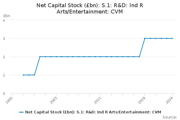 Download this time seriesNet Capital Stock (£bn): S.1: R&D: Ind R Arts/Entertainment: CVM
