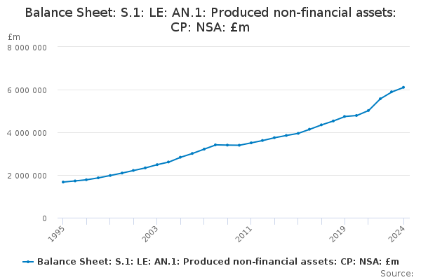 Download this time seriesBalance Sheet: S.1: LE: AN.1: Produced non-financial assets: CP: NSA: £m