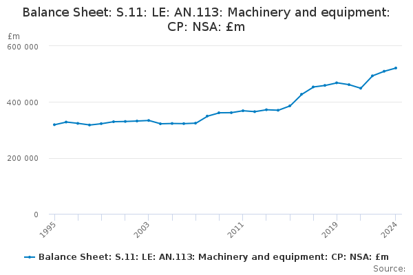 Download this time seriesBalance Sheet: S.11: LE: AN.113: Machinery and equipment: CP: NSA: £m