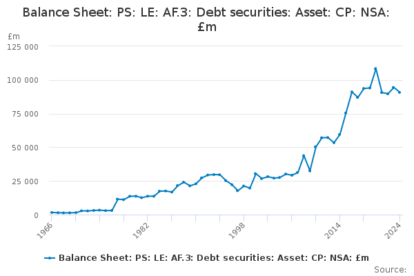 Download this time seriesBalance Sheet: PS: LE: AF.3: Debt securities: Asset: CP: NSA: £m