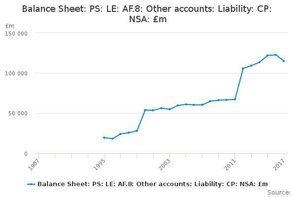 Download this time seriesBalance Sheet: PS: LE: AF.8: Other accounts: Liability: CP: NSA: £m