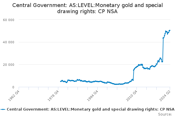 Download this time seriesCentral Government: AS:LEVEL:Monetary gold and special drawing rights: CP NSA